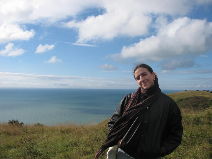 napravo sedí ona a dává mi svoji rukavici